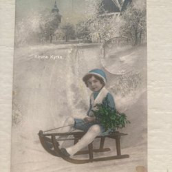 Postkort Kiruna Kirke semi topografisk barn på kælke