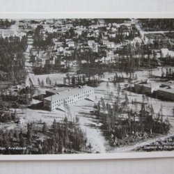 Postkort Kiruna med kirken og gymnasiet
