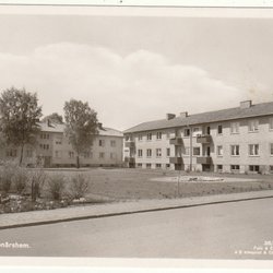 Bromölla Hagagatan med klockstapeln Håndkoloreret kort sandsynligvis tidligt 1960'erne