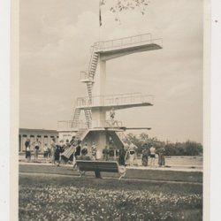 Lidköping Framnäsbadet Hopptorn kø og publikum antagelig 1940'erne