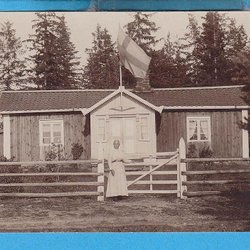 Otterbrook. Kvinde foran sit hus, fotopostkort omkring 1910'erne (Gullspång)