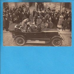 MÆNGDE. Bil med besøgende kongelige, fotopostkort omkring 1920'erne
