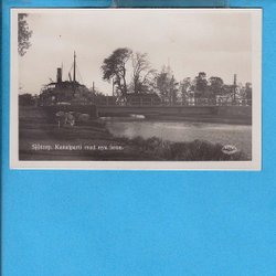 SJÖTORP. Kanalstrækning med den nye bro og dampbåden S/S Ceres ca. 1930 (Mariestad)