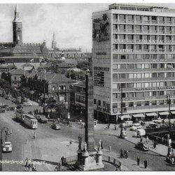 Postkort: Danmark København Copenhagen 9st, bla folkliv, biler og sporvogn