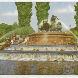 Ældre postkort fra København med fontænen "Gefion", postgået 1955