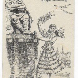Ældre tegnet postkort fra Helsingør i Danmark med Holger Danske, postgået 1950