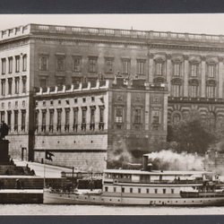 Båd ved kajen foran Dramaten i Stockholm, udsendt i 1944