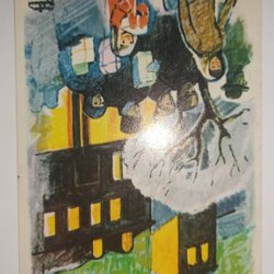 20. juli, nytårs- og påskekort klistret på A4-ark. Flere kendte kunstnere.