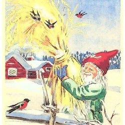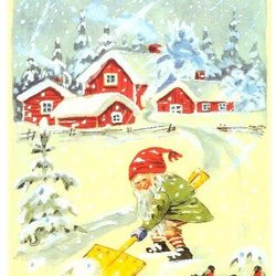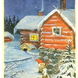 Søde julekort med nisser. tegnet af Marja-Liisa Pitkäranta