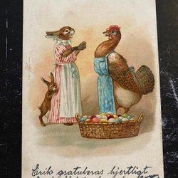 Påskehøne og hare med forklæde