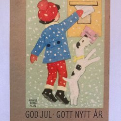 Julekort Annie Bergman barn hund postkasse
