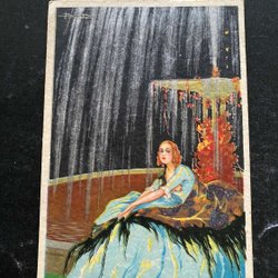 Et lille postkort. Pige med brev og påskeliljer signeret Signe Löfving