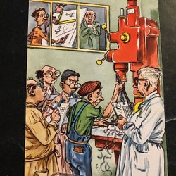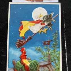 Et lille postkort. And og høne flyver på en kost, underskrevet Curt Nyström