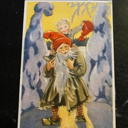 Tomte og dreng . signeret Stina Broome