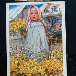Jenny Nyström, ældre postkort, god påske. 10,5'*7 cm.