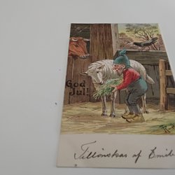 Julemanden giver julegrisen et æble Sendt 1907 Usigneret Thorvald Rasmussen