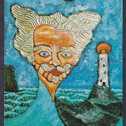 August Strindberg på postkort efter trærelief af Alf Stridfeldt, Arlöv.