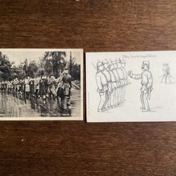 MARSCH TIL SKJUTBANAN FÖRENINGEN SKOLUNGDOMENS VAPENÖVNINGAR TVÅ GAMLA VYKORT