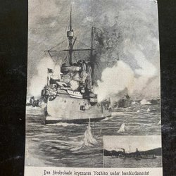 Den forulykkede krydser Yoshino under bombardementet af Wei-Hai-Wei 1904