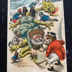 Tegnefilmspropagandakort fra Boerkrigen Se, men rør det ikke