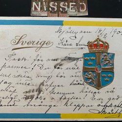 Sverige postkort med våben i guld og relief