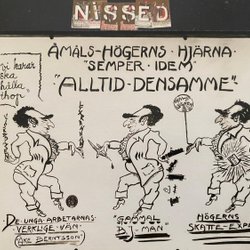 Karikaturkort fra valgkampen i efteråret 1936 i Åmål. Enestående