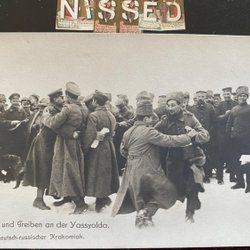 Lille postkort fra dansende soldater fra 1. verdenskrig