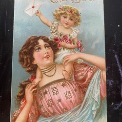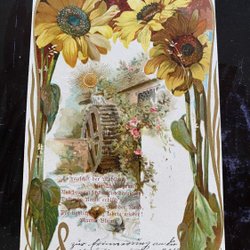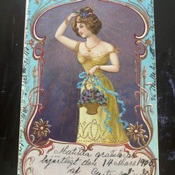 Pige blomsterkort Art nouveau-stil guld og relief