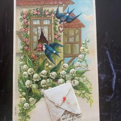 Tom kuvert på postkort i guld og Relief med fugl og blomster