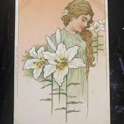 Dame og hvide liljer i jugendstil.