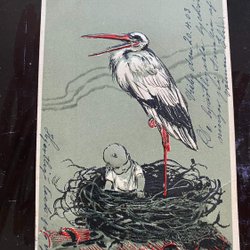 Stork og baby i relief