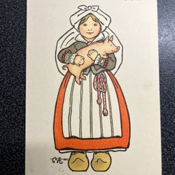 Julekort. Barn med flag og gris, pg 1912