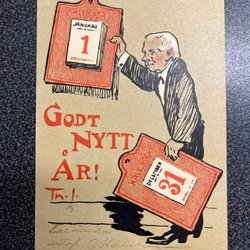Nytårskort med blåklædt dame, relief, pg
