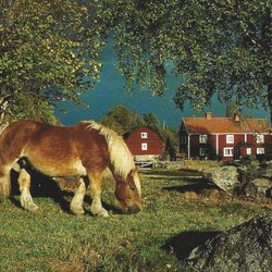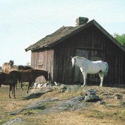 HÄST FLOK MED RUSS SKEPPSSÄTTNING GANARVE KARLSÖ I BAGGRUNDEN