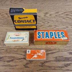 Blandet parti Vintage Kontorartikler Display Rekvisitter Staples Etiketter 4 kasser