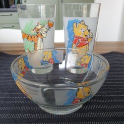 Vintage Samlarglas 4 stk. Med forskellige Nalle Puh motiver i god stand