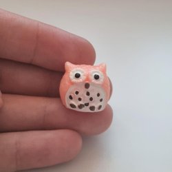 Håndmalet Ugle, Miniature, Miniature Ugle, Miniature Ugle (1,9 cm høj - Pink)