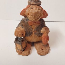 Vintage håndskåret bjørn i træ med signatur nedenunder