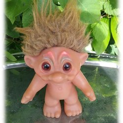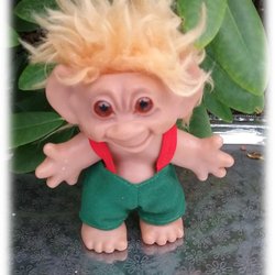 Dametrold Dansk lykketrold 1986 med snedkerbukser Pæn stand