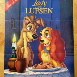 LADY OG VAGABONDEN 70x100 Sv orig 1955 RE-1989 Animeret, DISNEY