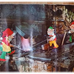 Vintage bræt med nisser, der smeder på komfuret Gerharbs Made in Sweden