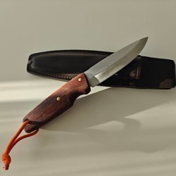 Samlarkniv i rostfritt stål med fast blad och trähandtag och slida- A0970