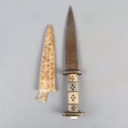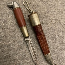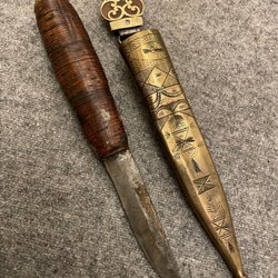 Traditionel kniv med dekorativt skaft og fodral