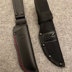 Stor kniv med læderbeskyttelse