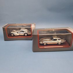 Silver Cars Collection – Jaguar E-Type & Bugatti Atlantic i krom 1:43
