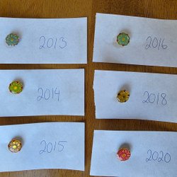 Majblomme pins 4 stk 2010, 2015, 2017, 2018