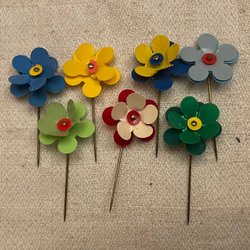 MAJBLOMMOR med nåle 7 stk, forskellige år 1960 1970 1980 erne, samleobjekt **Retro
