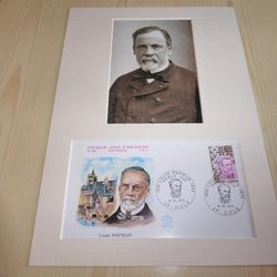 Louis Pasteur fotografi & førstedagsbrev passepartout størrelse A4