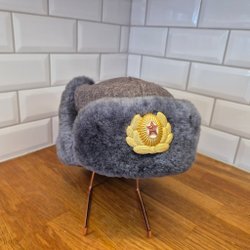 Grå ushanka hat, nr. 54 Ryss Ryssland øreklapper emblem soviet vintage ?