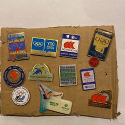 Samling af mærker og pins.